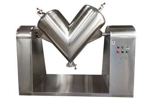 V型混合机一般应用于制药、食品、化工、冶金、电子等行业对两种以上的干粉状、颗粒状物料的混合。该设备适用于物料流动性良好、物性差异小的粉粒体的混合,特别针对混合批量比较少,要求混合无死角的产品,由于V型混合机容器内的物料流动平稳,不会破坏物料原形,因此该设备也适用于易破碎、易磨损的粒状物料的混合。