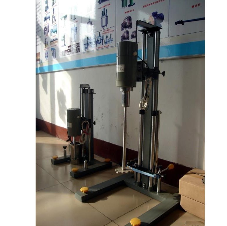 SDF400实验室多用分散乳化机是用于将粉态物料和液态物料进行固---液相搅拌分散、研磨乳化的机器。该机具有分散和砂磨两种功能。本机采用双轴恒力升降系统,升降方便。采用智能调速控制仪,对电机实行无级调速。应用数字PID技术,控制精度高,数字显示转速。利用左右夹持器对容器固定,容器采用夹套结构,可以通水冷却。高速分散的*常用途是把极微细的固体粒子加入液体中,做成悬浮粒子。悬浮粒子的特性是微细粒子不受地心吸力而沉淀。在分散的过程中,几个过程同时进行。1用液体的基料把固体的粒子表面湿润。2用机械能把颗粒打散成为较小的粒子。3粒子和液体基料之间的特性互动决定了湿润和絮凝的助力。固体颗粒和液体基料之间的互动关系决定了湿润和抗絮凝效果。适用于涂料、染料、颜料、油墨、造纸、胶粘剂等化工行业对液体及液--固相物料进行搅拌,溶解和分散。(手动升降,220V电压)