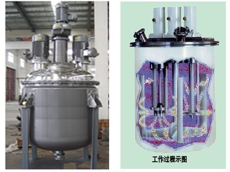 本设备属于常规的搅拌、混合、溶解,通过搅拌使得物料得以充分混合、分散、溶解。此设备广泛适用于石油化工、农药、生物医药、涂料、精细化工、日化产品,是理想的乳化混合设备。