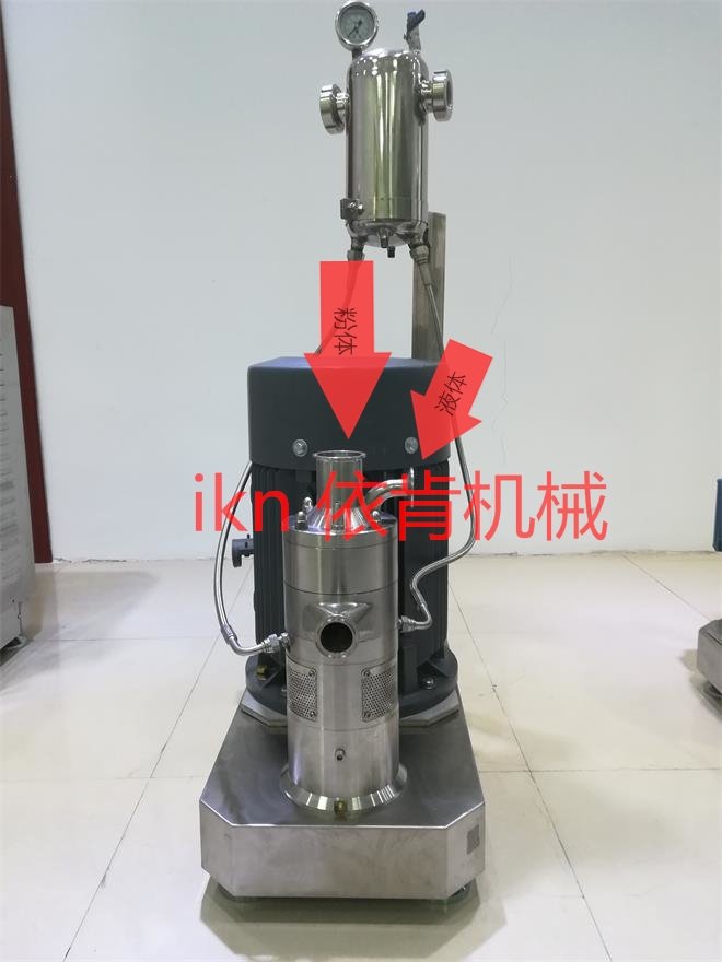 环氧乳化剂呢主要有环氧树脂、羧酸聚氧乙烯醚、催化剂等混合乳化而成,目前一般厂家都是采用插入罐体内的高速乳化机进行乳化,此种设备只能实验,小试且不能放大生产,而且乳化过程中温度还不能控制,现在依肯特别推荐一款罐外式的乳化机,也是管线式乳化机,可以通过两个入口同时进入乳化设备,IKN乳化机与物料接触部分是夹套式,可以通过冷水使其在乳化过程中降温。