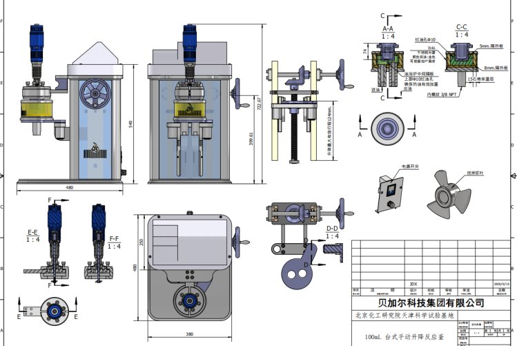 结构固定釜盖、手动升降釜体(可设计翻转)