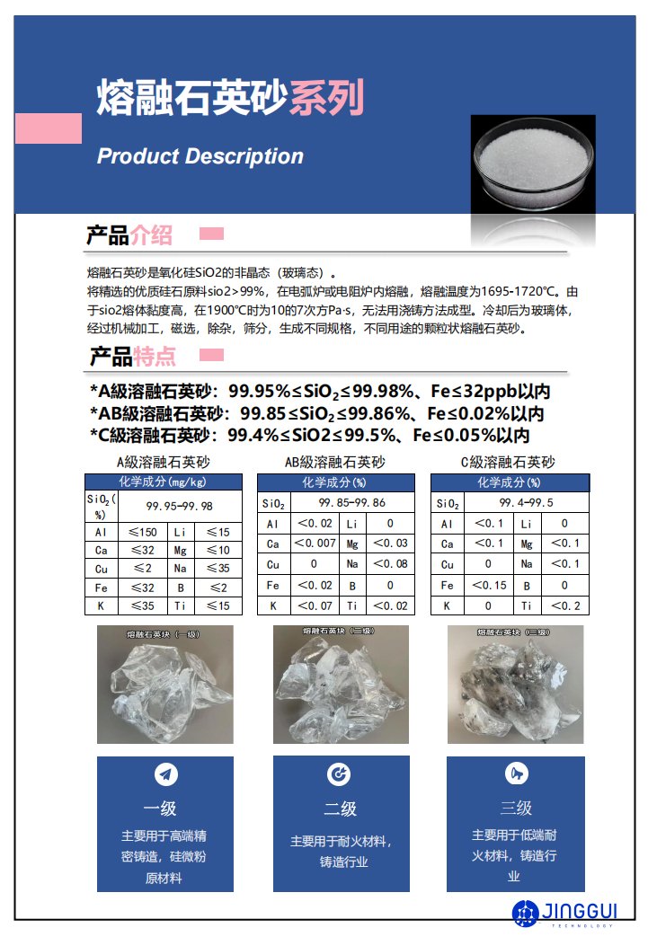 *A级熔融石英砂99.95%≤SiO2≤99.98%、Fe≤32ppb以内