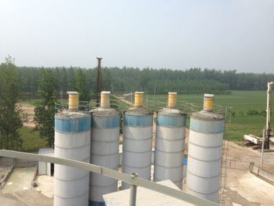 仓顶除尘器是一种圆形可拆的金属滤筒,底板上有14个嵌入圆形孔,它设有14个滤芯,扎紧在上端1个振动器的吊架上,定时震动,使滤芯阻留下来的灰尘降落在仓内。