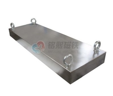 除铁磁板(磁板)是采用优质不锈钢板材和高B值稀土合金钕跌硼,并采用特殊的制作方法制作而成。可以悬挂在输送带、料槽、管道、伺料盘、传送带上方或末端,构成磁性滤器。当含铁的物质通过时,受到磁板的吸引,将含铁的物质牢固的吸附在板壁上,以保证设备的完好和产品的安全。