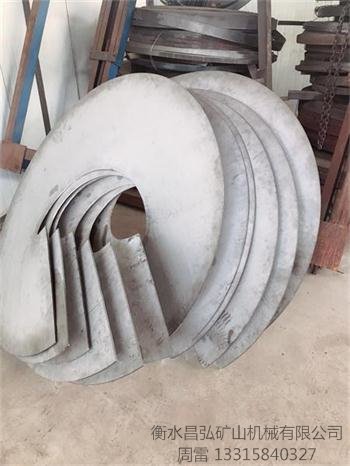 可成型超大、超厚,材质为低碳钢、低合金钢、耐磨钢及不锈钢的等径、等螺距、变径、变螺距、及内孔圆周和外径圆周带凸台或豁口要求的多种形式的“分段等厚螺旋叶片”。