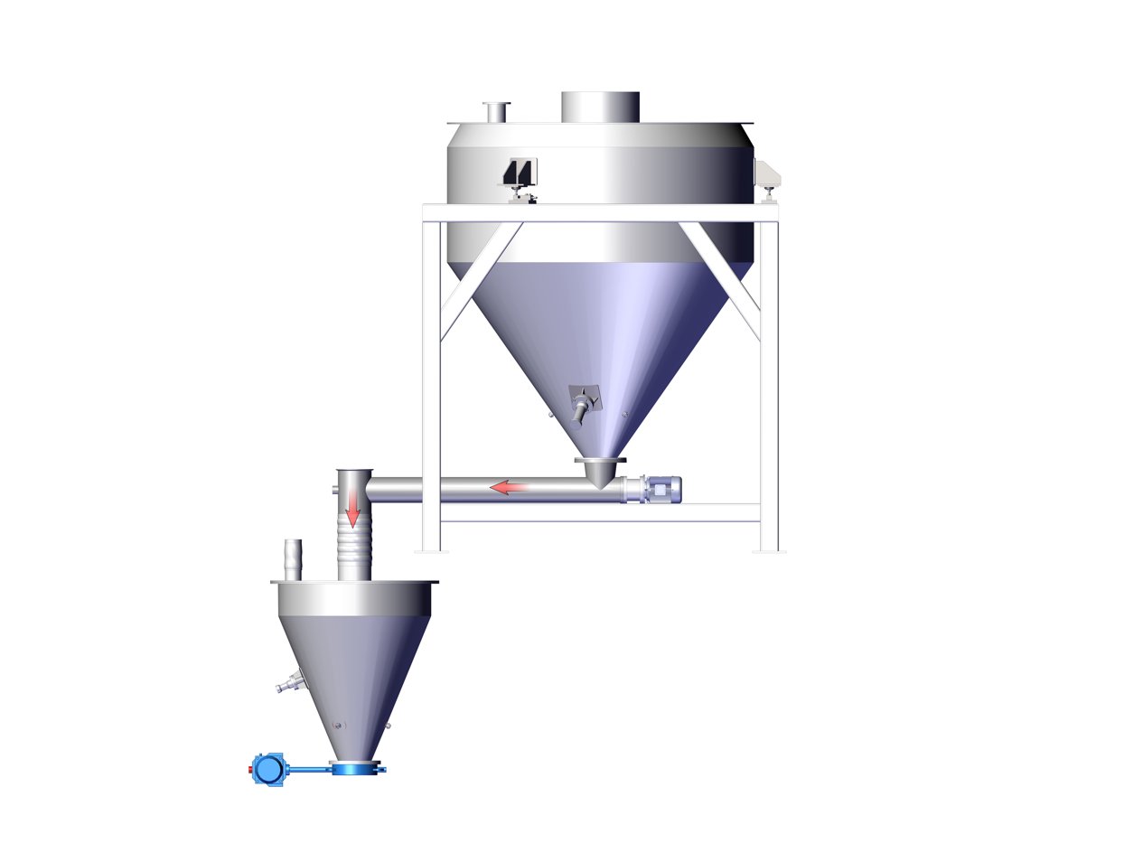 玉米粉输送采用气力输送技术。气力输送,又称气流输送,是利用气流能量在密闭管道内沿气流方向输送颗粒状物料,是流态化技术的一种具体应用。在输送过程中,该技术还允许对物料进行加热、冷却、干燥和气流分级等物理操作。流过的单位重量气体得到能量的大小是气体输送机械的重要性能,用风压来表示气体输送机械赋予单位体积气体的机械能。由于气体密度小,有可压缩性。