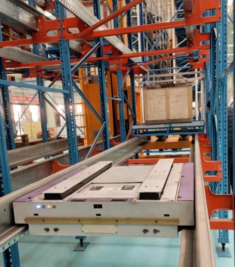 穿梭车本体由外壳、行走机构、升降机构、传感器、驱动电池、控制系统、车载遥控器接收端、安全保护组件等组成,可根据遥控器指令在巷道内完成单一的存、取托盘等动作;通过手持终端操作,可实现远程选车、寻车,单次入库,单次或连续出库,移库,紧急停止、原点召回等实时反馈动作,具有定位精准、方便快捷安全等特点。
