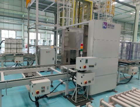 码盘机是将输送线上取走货物的空托盘经输送机逐个送至码盘机位,将托盘自动堆成一垛(一般6-10个)堆积好的托盘垛入库保存或重新分发使用;