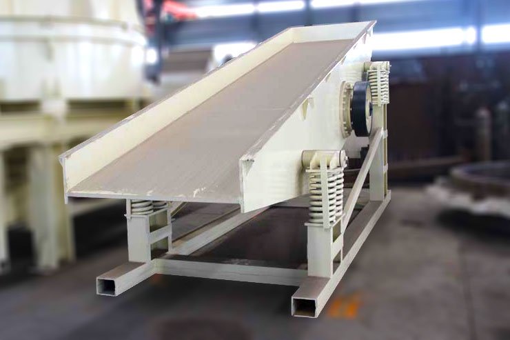 ZW系列给料机采用了自定心重型激振器,其传动部有一对轴承,机体支承在弹簧支座上,当轴与偏心轮回转时,机体作近似圆形轨迹的振动。