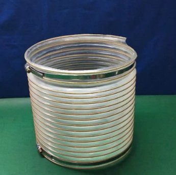 用镀铜钢丝螺旋加强的透明TPU软连接,适合于振动、旋转、以及真空输送等场合。壁厚0.35-0.5mm,非常坚固,轴向可压缩约5:1。